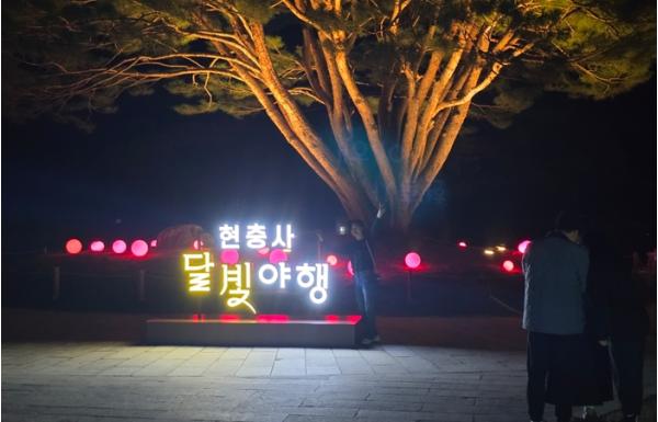 이번 행사의 또 다른 볼거리는 현충사 전역을 수놓은 야간 경관 조명이었다. 대형 게이트와 거북선 조형물, 발광다이오드(LED)볼과 네온플렉스 조명, 달 조명과 큐브 조형물 등 곳곳에 설치된 포토존에서는 가족과 연인들이 추억을 남기느라 분주했다.