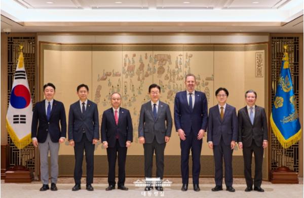 이날 면담에는 배경훈 부총기 겸 과학기술정보통신부 장관과 김정관 산업부 장관, 강훈식 대통령비서실장, 김용범 정책실장, 하정우 AI미래기획수석 등이 배석했다.