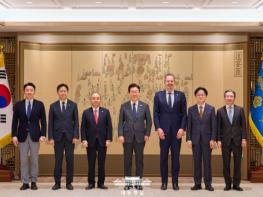 이 대통령은 이날 손 회장에게 감사의 뜻을 우선 전달했다. 이 대통령은 "우리 국민은 손 회장께서 한미 통상협상 과정에 상당한 도움과 조언을 주신 것을 모르고 계실 텐데 이 자리를 빌려 다시 한번 감사드린다"고 말했다.