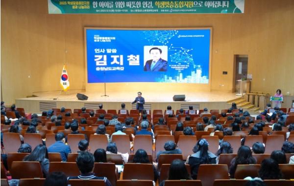충남교육청은 12월 9일 충남교육청과학교육원(아산)에서 도내 학교장과 교감, 교육지원청 업무담당자 등을 대상으로 ‘2025 학생맞춤통합지원 성과 나눔자리’행사를 개최했다.