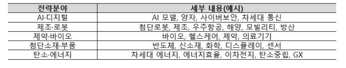 중기부는 국가경쟁력과 직결된 ▲AI·디지털 ▲첨단로봇·제조 ▲제약·바이오 ▲첨단소재·부품 ▲탄소·에너지의 5개 전략분야를 중심으로 단계별 검증을 거쳐 국내 산업생태계 혁신과 글로벌 신시장 창출이 가능한 5개 프로젝트를 선정할 계획이다.