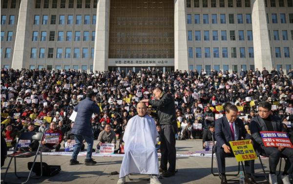 김진태 강원특별자치도지사와 김시성 강원특별자치도의회 의장이 이틀째 국회에서 강원특별법 3차 개정안 통과를 촉구하는 천막농성을 이어가고 있는 가운데, 장동혁 국민의힘 대표가 천막농성장을 격려 방문했다.