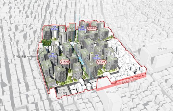 강서구 화곡1동 354번지 일대(85,462.6㎡)는 모아주택 3개소 추진을 통해 기존 1,654세대에서 275세대가 늘어난 총 1,929세대(임대 479세대 포함)가 공급될 예정이다.