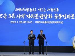 대한민국시장·군수·구청장협의회는 2월 26일 광주 국립아시아문화전당에서 민선8기 4차년도 제3차 공동회장단회의를 개최하고,『5극3특 시대 자치분권 강화 공동건의문』을 발표했다.