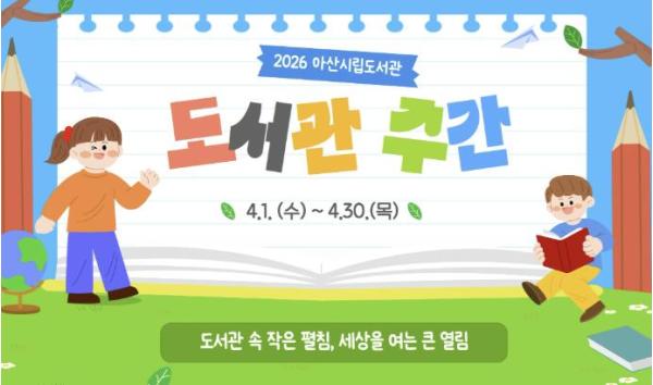 아산시립도서관은 4월 도서관 주간을 맞아 4월 1일부터 30일까지 한 달간 시민과 함께하는 다양한 독서 문화 행사를 운영한다.